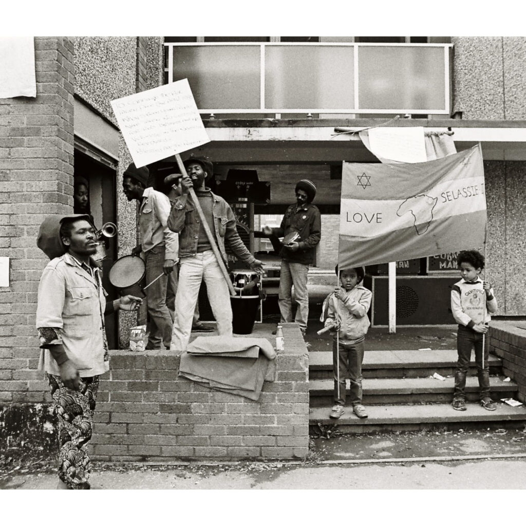 Foto de Andy Beezer – Jah Revelation amplificando Aswad, 1984