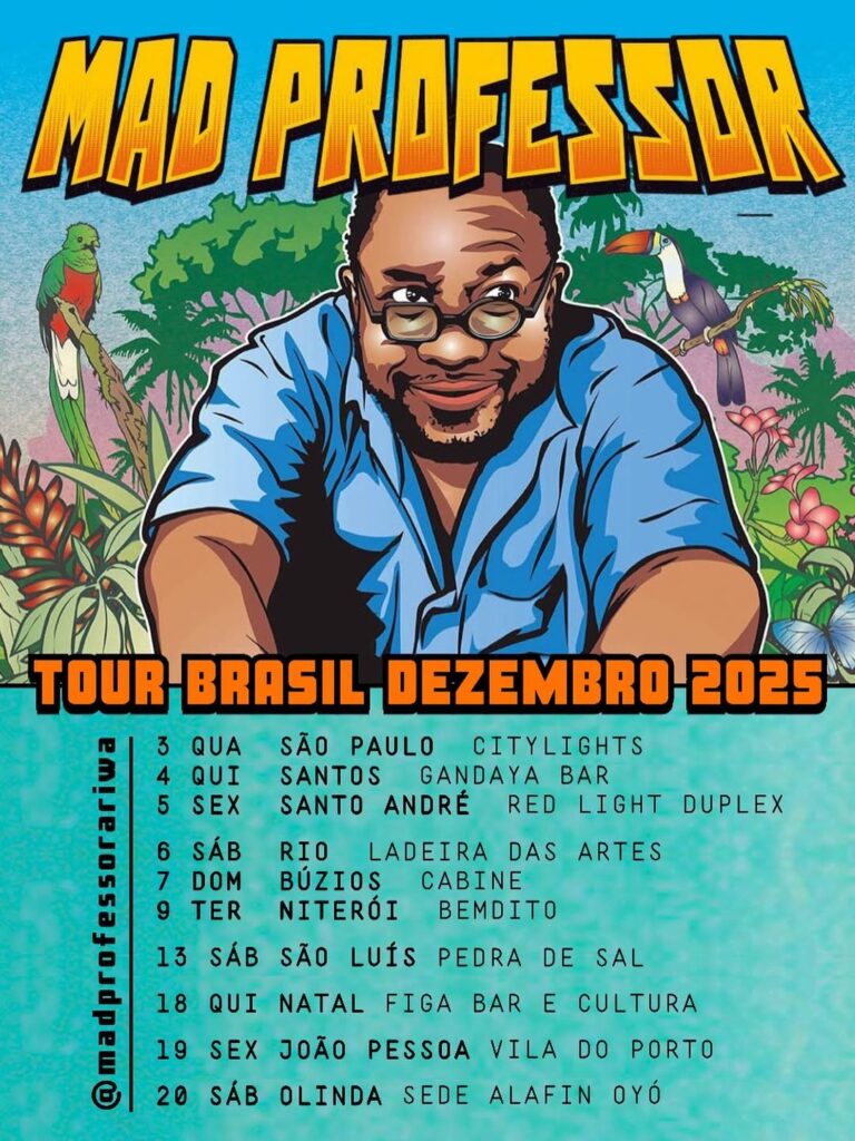 - 04/12/2025: Santos (SP) | Mad Professor com Joe Ariwa – Abertura com Dubkilla / Ceci Tunes no Gandaya Bar | 22h | Link para ingressos e + infos